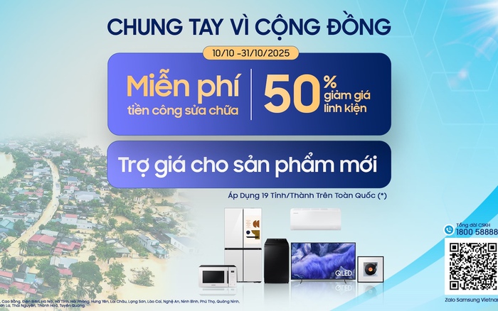Samsung đồng hành cùng người dân vùng bão: Miễn phí công sửa chữa, giảm giá linh kiện 50%